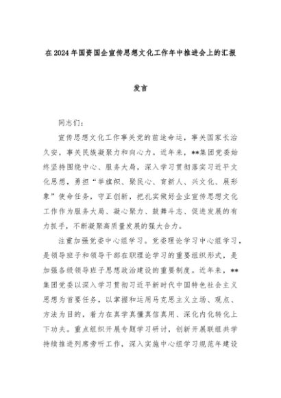 【七哥公文】2024年:在2024年国资国企宣传思想文化工作年中推进会上的汇报发言+更多免费公文+VX:QiGeGongWen2024