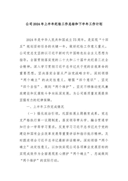 / 【七哥公文】2024年:公司2024年上半年纪检工作总结和下半年工作计划+更多免费公文+VX:QiGeGongWen2024