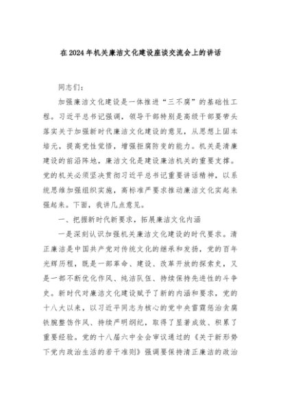 / 【七哥公文】2024年:在2024年机关廉洁文化建设座谈交流会上的讲话+更多免费公文+VX:QiGeGongWen2024