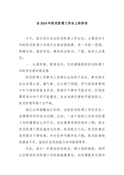 / 【七哥公文】2024年:在2024年防汛防滑工作会上的讲话+更多免费公文+VX:QiGeGongWen2024