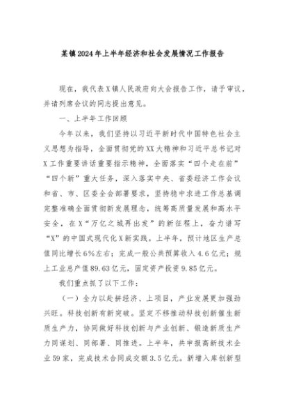 / 【七哥公文】2024年:某镇2024年上半年经济和社会发展情况工作报告+更多免费公文+VX:QiGeGongWen2024