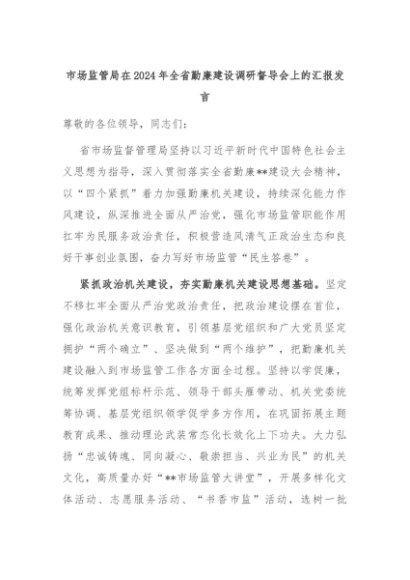 【七哥公文】2024年:市场监管局在2024年全省勤廉建设调研督导会上的汇报发言+更多免费公文+VX:QiGeGongWen2024