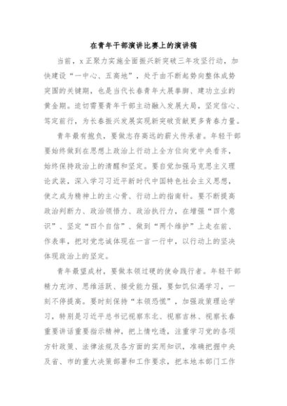 / 【七哥公文】2024年:在青年干部演讲比赛上的演讲稿+更多免费公文+VX:QiGeGongWen2024