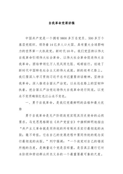 【七哥公文】2024年:自我革命党课讲稿+更多免费公文+VX:QiGeGongWen2024