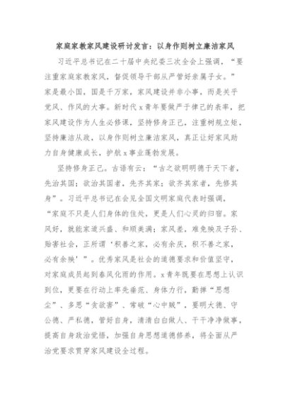 / 【七哥公文】2024年:家庭家教家风建设研讨发言:以身作则树立廉洁家风+更多免费公文+VX:QiGeGongWen2024