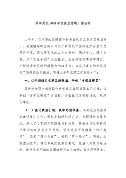 / 【七哥公文】2024年:某局党组2024年抓基层党建工作总结+更多免费公文+VX:QiGeGongWen2024