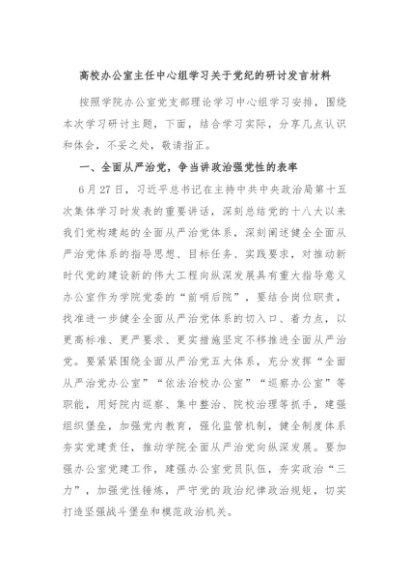 / 【七哥公文】2024年:高校办公室主任中心组学习关于党纪的研讨发言材料+更多免费公文+VX:QiGeGongWen2024