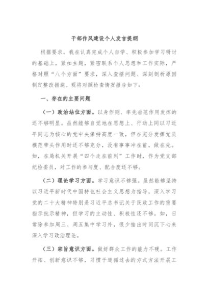 【七哥公文】2024年:干部作风建设个人发言提纲+更多免费公文+VX:QiGeGongWen2024