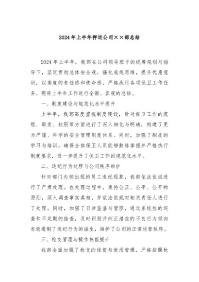 / 【七哥公文】2024年:2024年上半年押运公司××部总结+更多免费公文+VX:QiGeGongWen2024