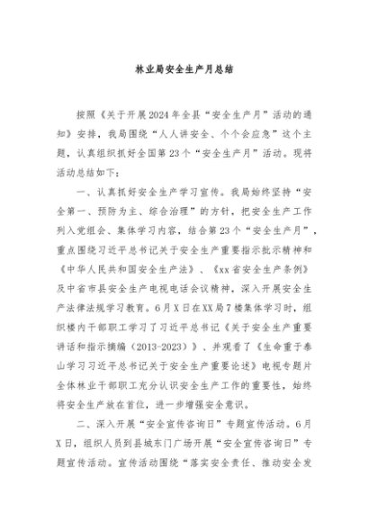 / 【七哥公文】2024年:林业局安全生产月总结+更多免费公文+VX:QiGeGongWen2024