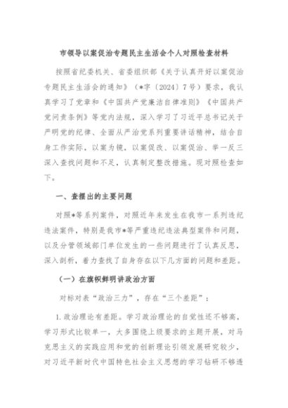 / 【七哥公文】2024年:市领导以案促治专题民主生活会个人对照检查材料+更多免费公文+VX:QiGeGongWen2024