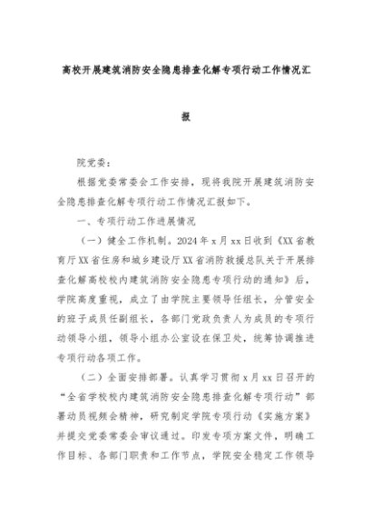 【七哥公文】2024年:高校开展建筑消防安全隐患排查化解专项行动工作情况汇报+更多免费公文+VX:QiGeGongWen2024