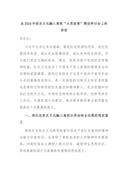 【七哥公文】2024年:在2024年校史文化融入高校“大思政课”建设研讨会上的讲话+更多免费公文+VX:QiGeGongWen2024