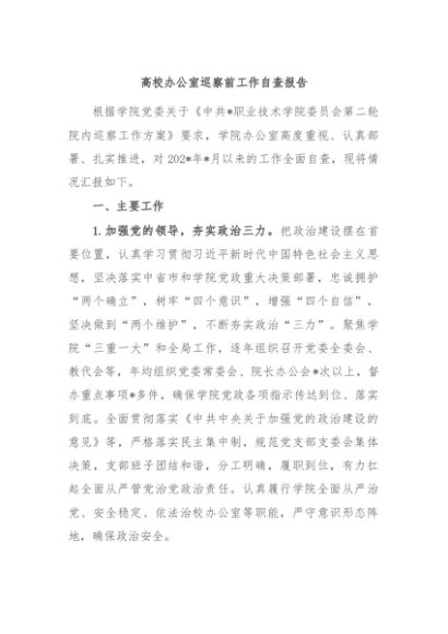 / 【七哥公文】2024年:高校办公室巡察前工作自查报告+更多免费公文+VX:QiGeGongWen2024