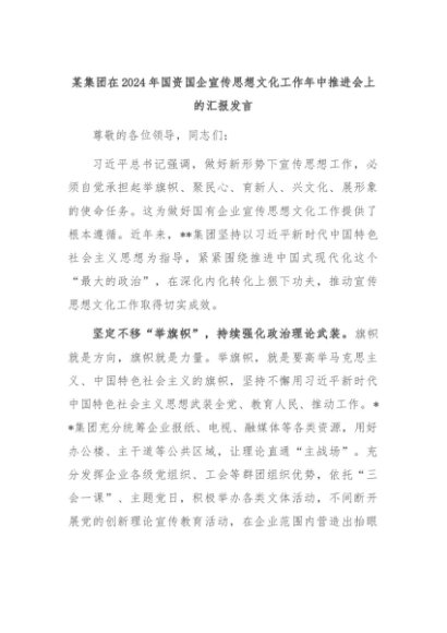 【七哥公文】2024年:某集团在2024年国资国企宣传思想文化工作年中推进会上的汇报发言+更多免费公文+VX:QiGeGongWen2024