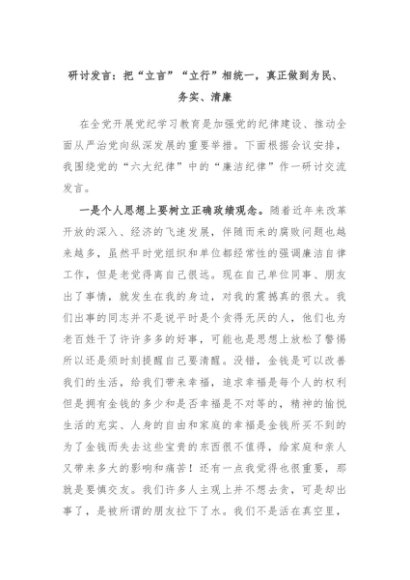 【七哥公文】2024年:研讨发言:把“立言”“立行”相统一,真正做到为民、务实、清廉+更多免费公文+VX:QiGeGongWen2024
