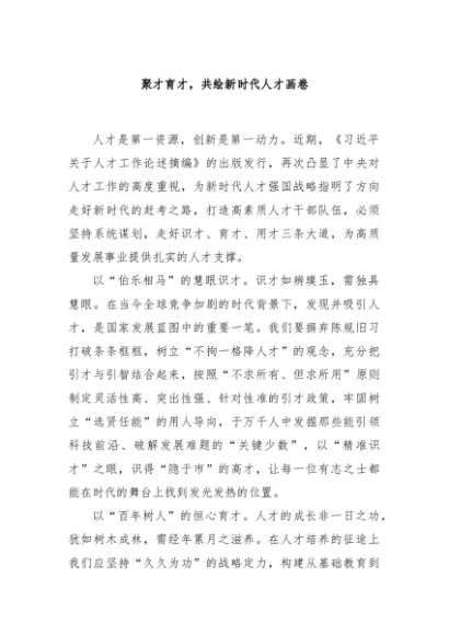 / 【七哥公文】2024年:聚才育才,共绘新时代人才画卷+更多免费公文+VX:QiGeGongWen2024