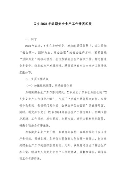 / 【七哥公文】2024年:X乡2024年近期安全生产工作情况汇报+更多免费公文+VX:QiGeGongWen2024