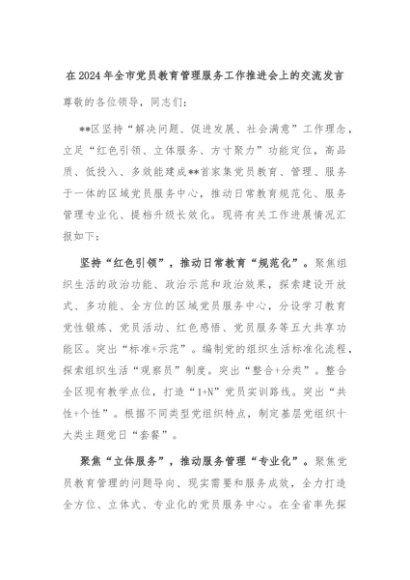【七哥公文】2024年:在2024年全市党员教育管理服务工作推进会上的交流发言+更多免费公文+VX:QiGeGongWen2024