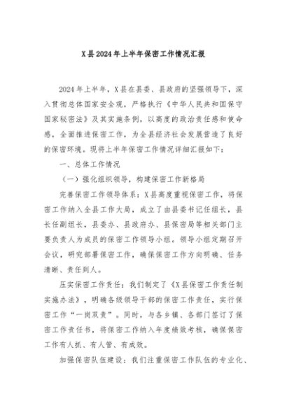 / 【七哥公文】2024年:X县2024年上半年保密工作情况汇报+更多免费公文+VX:QiGeGongWen2024