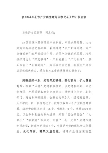 / 【七哥公文】2024年:在2024年全市产业链党建片区推进会上的汇报发言+更多免费公文+VX:QiGeGongWen2024