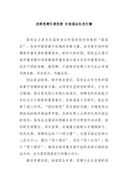 / 【七哥公文】2024年:发挥党建引领优势 打造国企红色引擎+更多免费公文+VX:QiGeGongWen2024
