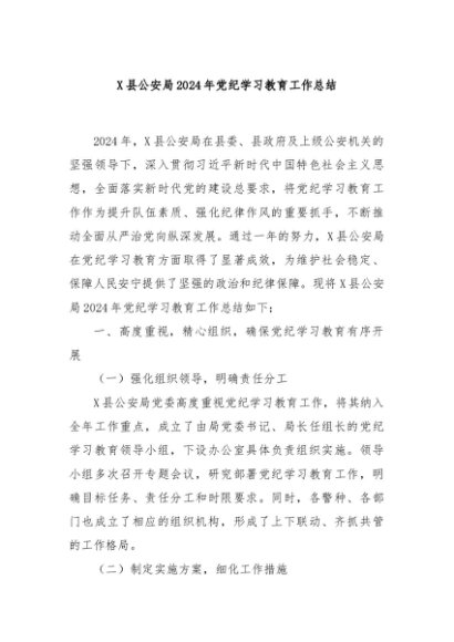 / 【七哥公文】2024年:X县公安局2024年党纪学习教育工作总结+更多免费公文+VX:QiGeGongWen2024