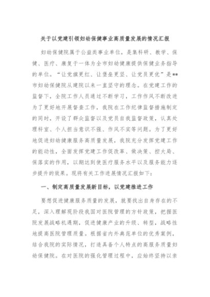 / 【七哥公文】2024年:关于以党建引领妇幼保健事业高质量发展的情况汇报+更多免费公文+VX:QiGeGongWen2024