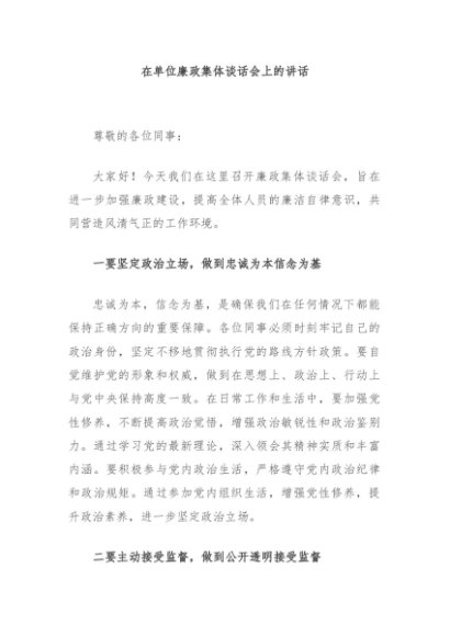 / 【七哥公文】2024年:在单位廉政集体谈话会上的讲话+更多免费公文+VX:QiGeGongWen2024