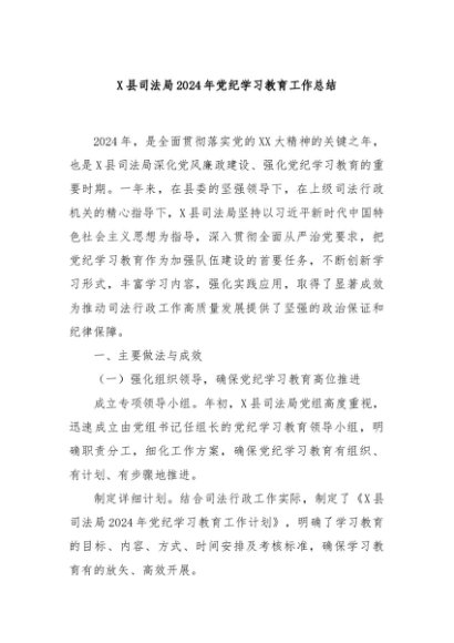 / 【七哥公文】2024年:X县司法局2024年党纪学习教育工作总结+更多免费公文+VX:QiGeGongWen2024