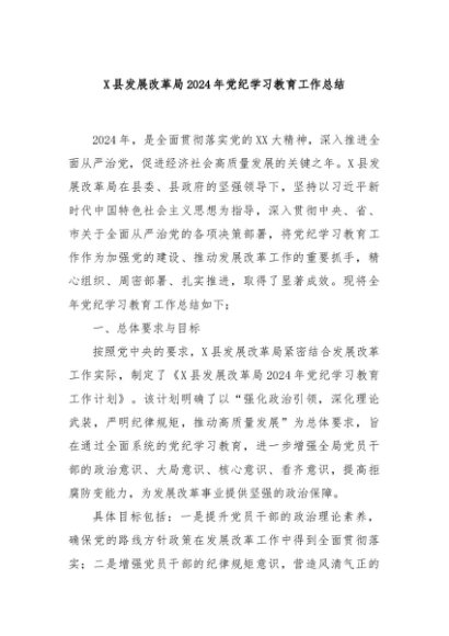/ 【七哥公文】2024年:X县发展改革局2024年党纪学习教育工作总结+更多免费公文+VX:QiGeGongWen2024