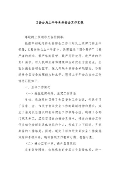 / 【七哥公文】2024年:X县分局上半年食品安全工作汇报+更多免费公文+VX:QiGeGongWen2024