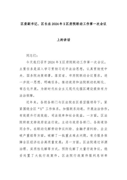 【七哥公文】2024年:区委副书记、区长在2024年X区府院联动工作第一次会议上的讲话+更多免费公文+VX:QiGeGongWen2024