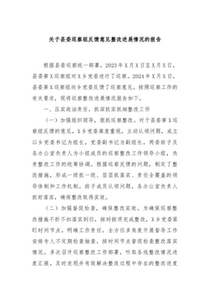 / 【七哥公文】2024年:关于县委巡察组反馈意见整改进展情况的报告+更多免费公文+VX:QiGeGongWen2024