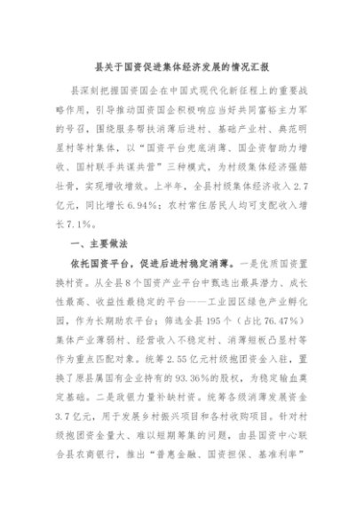 / 【七哥公文】2024年:县关于国资促进集体经济发展的情况汇报+更多免费公文+VX:QiGeGongWen2024