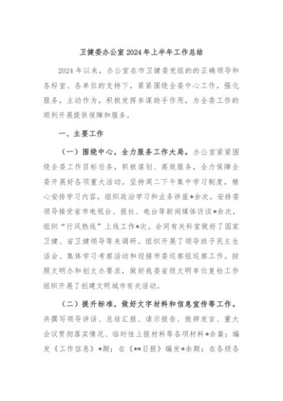 / 【七哥公文】2024年:卫健委办公室2024年上半年工作总结+更多免费公文+VX:QiGeGongWen2024