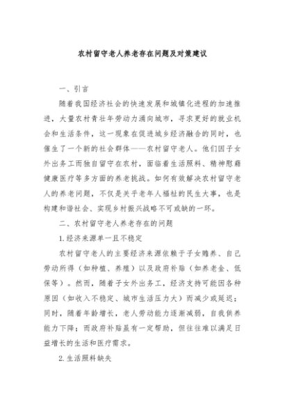/ 【七哥公文】2024年:农村留守老人养老存在问题及对策建议+更多免费公文+VX:QiGeGongWen2024