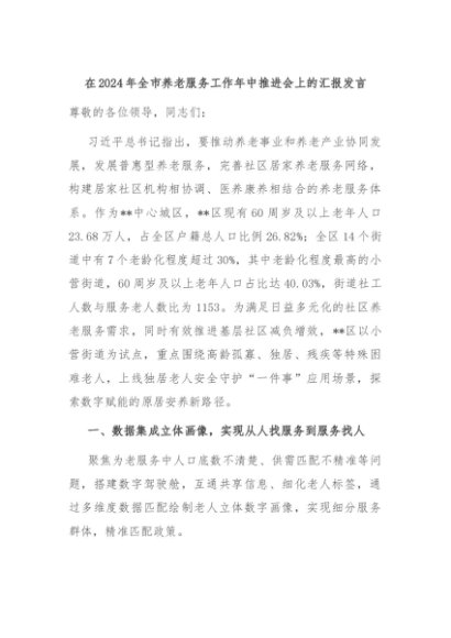 【七哥公文】2024年:在2024年全市养老服务工作年中推进会上的汇报发言+更多免费公文+VX:QiGeGongWen2024