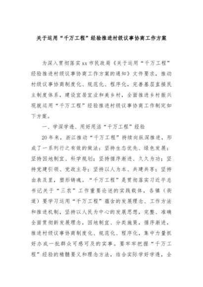 / 【七哥公文】2024年:关于运用“千万工程”经验推进村级议事协商工作方案+更多免费公文+VX:QiGeGongWen2024