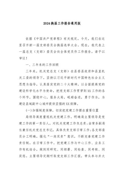 / 【七哥公文】2024年:2024换届工作报告通用版+更多免费公文+VX:QiGeGongWen2024
