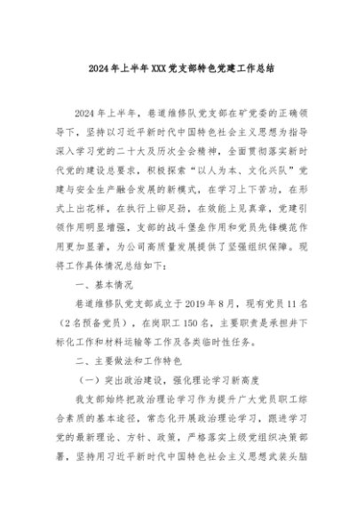 / 【七哥公文】2024年:2024年上半年XXX党支部特色党建工作总结+更多免费公文+VX:QiGeGongWen2024