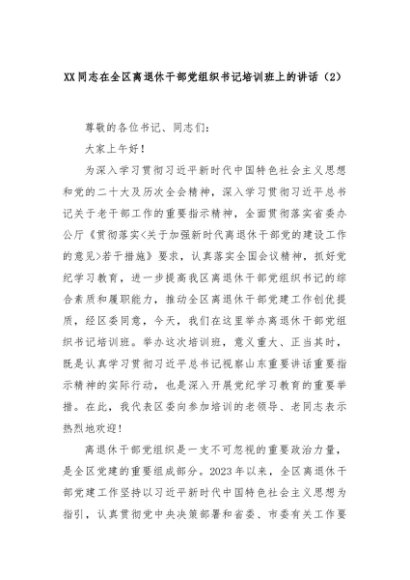 【七哥公文】2024年:XX同志在全区离退休干部党组织书记培训班上的讲话(2)+更多免费公文+VX:QiGeGongWen2024
