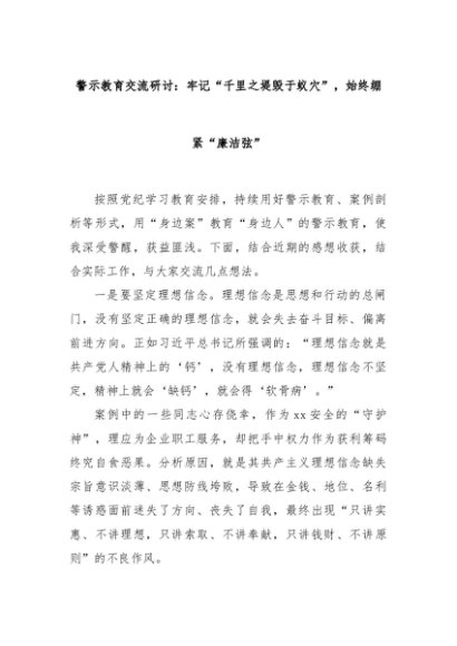 【七哥公文】2024年:警示教育交流研讨:牢记“千里之堤毁于蚁穴”,始终绷紧“廉洁弦”+更多免费公文+VX:QiGeGongWen2024