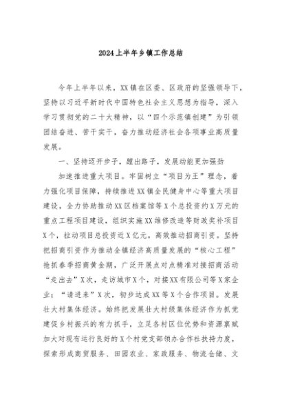 / 【七哥公文】2024年:2024上半年乡镇工作总结+更多免费公文+VX:QiGeGongWen2024