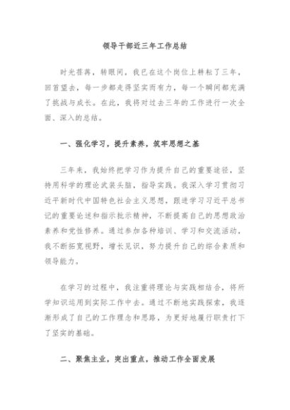 / 【七哥公文】2024年:领导干部近三年工作总结+更多免费公文+VX:QiGeGongWen2024