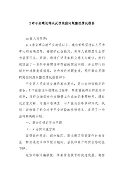 / 【七哥公文】2024年:X市平安建设群众反馈突出问题整改情况报告+更多免费公文+VX:QiGeGongWen2024