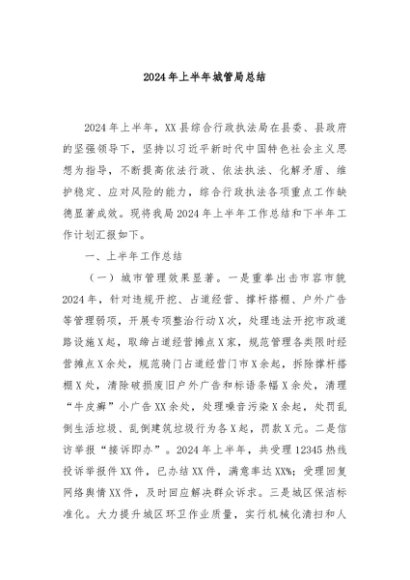 / 【七哥公文】2024年:2024年上半年城管局总结+更多免费公文+VX:QiGeGongWen2024