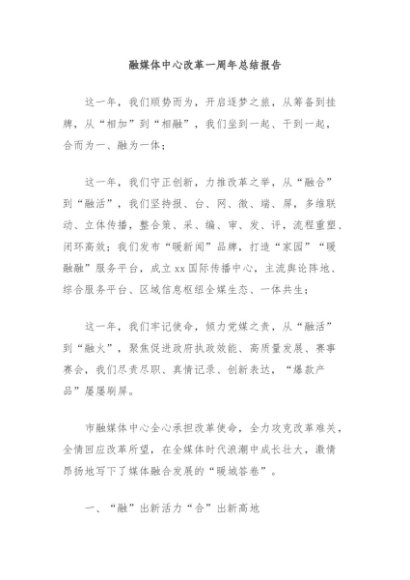 / 【七哥公文】2024年:融媒体中心改革一周年总结报告+更多免费公文+VX:QiGeGongWen2024