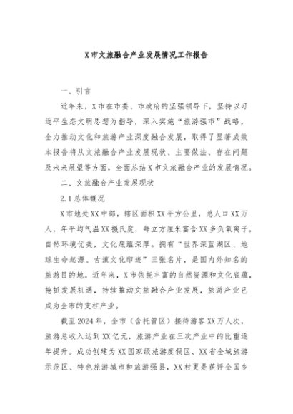/ 【七哥公文】2024年:X市文旅融合产业发展情况工作报告+更多免费公文+VX:QiGeGongWen2024