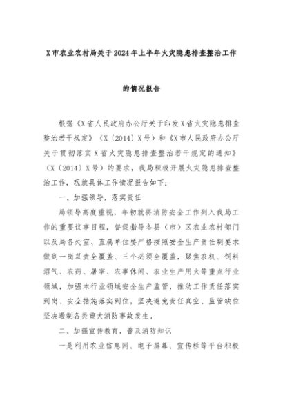 【七哥公文】2024年:X市农业农村局关于2024年上半年火灾隐患排查整治工作的情况报告+更多免费公文+VX:QiGeGongWen2024